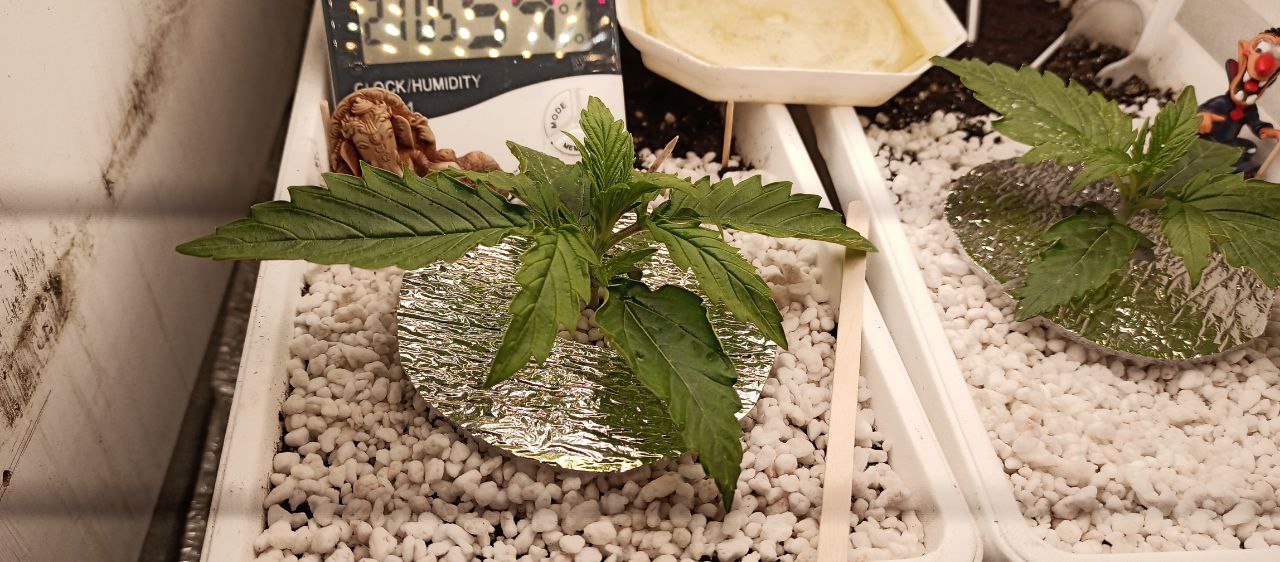 Сатори, девять дней от каски. Судя по листу, явная сативная доминанта. Особо отмечаю скорость роста. Обычный полив, раз в день с 25% от рекомендуемого TriPart.